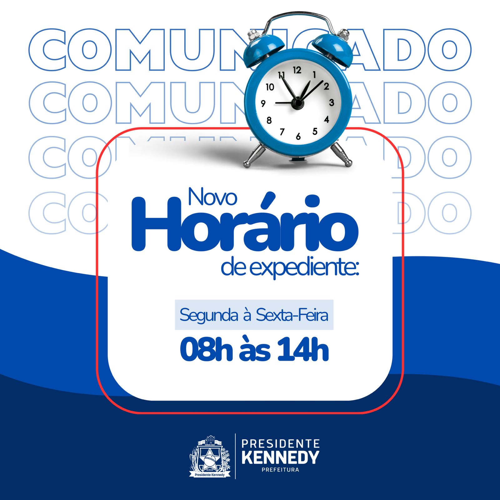 A partir desta quarta-feira (08), o expediente nos órgãos da Administração Pública Municipal de Presidente Kennedy funcionará das 8h às 14h.