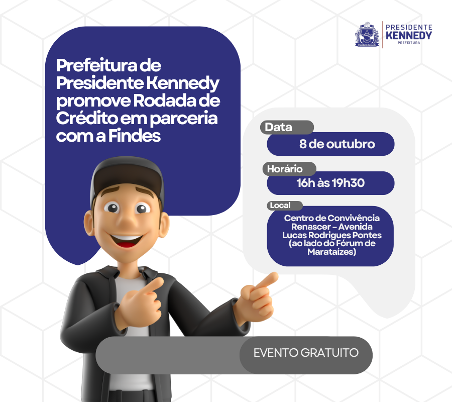 A Prefeitura de Presidente Kennedy, em parceria com a Federação das Indústrias do Espírito Santo (Findes), Sebrae, CDL, Sala do Empreendedor e Aderes, realiza no dia 8 de outubro a Rodada de Crédito da Findes. O evento acontece no Centro de Convivência Renascer, em Marataízes, das 16h às 19h30, e tem como objetivo aproximar empresários das principais oportunidades de financiamento e linhas de crédito disponíveis no mercado.