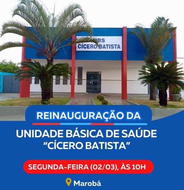 A Prefeitura de Presidente Kennedy realiza nesta segunda-feira, 2 de março, às 10h, a reinauguração da Unidade Básica de Saúde (UBS) “Cícero Batista”, localizada na comunidade de Marobá.